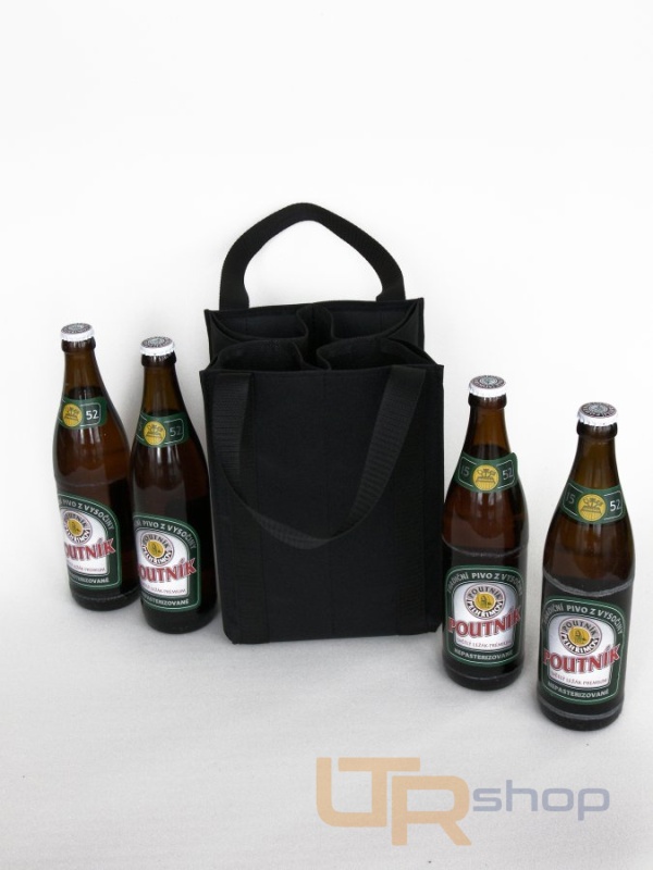 Taška na pivo (pivní taška) je určena pro 4-5 lahví piva o objemu 0,5 l. Je vhodným a origiálním dárkem pro milovníky piva. Materiál tašky: nylon, materiál vnitřních kapes na lahve: podšívkový nylon (slabší). Barva: černá. Rozměry: 25 x 19 x 15 cm.