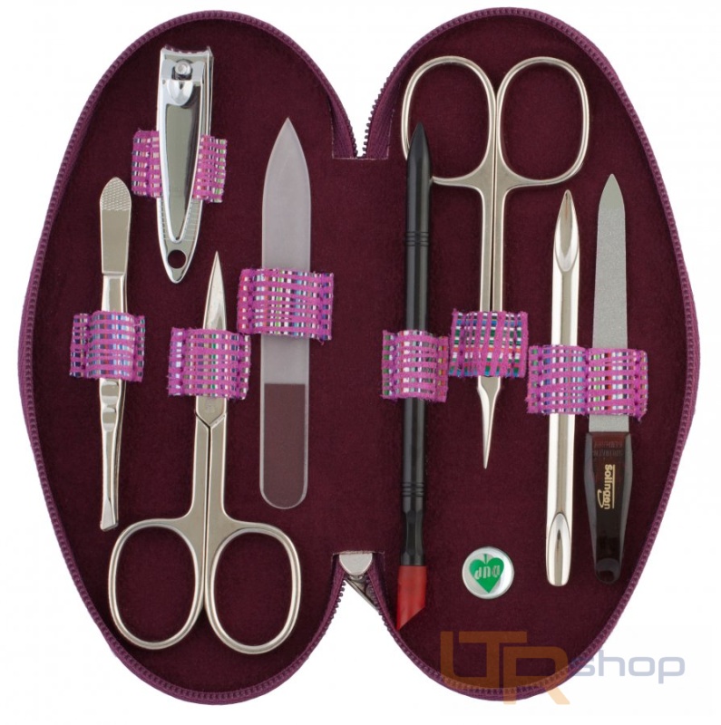 Luxusní manikúrní sada 8-dílná růžová, kožená se vzorem obsahuje manikúrní náčiní značky DUP a Solingen, které potěší každou ženu. Uzavírá se zipem. Rozměry: 16 x 8 x 2 cm.