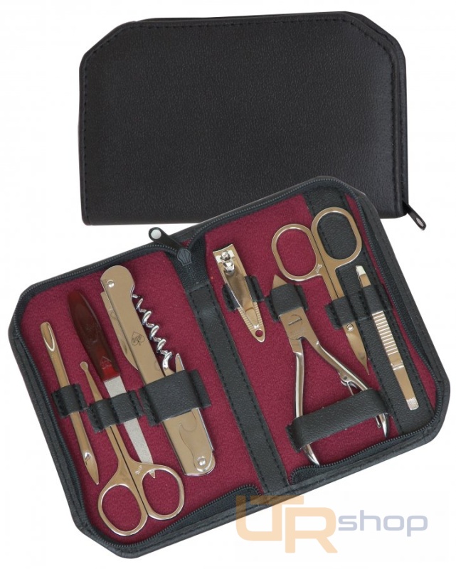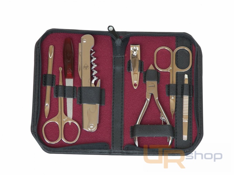 Pánská manikúra vyrobená z kvalitní černé koženky obsahuje manikúrní náčiní značky DUP a kleště Solingen. Uzavírá se zipem a je vhodná pro domácí i profesionální péči o nehty. Rozměry: 15,5 x 10 x 2,5 cm.