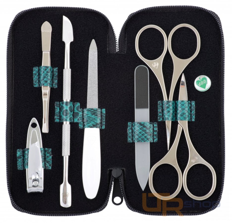 Pouzdro 7-dílného manikúrního setu je vyrobeno z koženky-imitace krokodýl. Uzavírá se na zip. Vybavení manikúry značky DUP potěší každou ženu i dívku. ,Rozměry: 14,5 x 7,5 x 2 cm.