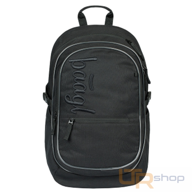 Černočerný batoh Core Uni s logem BAAGL, anatomicky tvarovanými zády a praktickým organizérem pro přehledné uspořádání školních pomůcek je ideální volbou pro každodenní nošení.