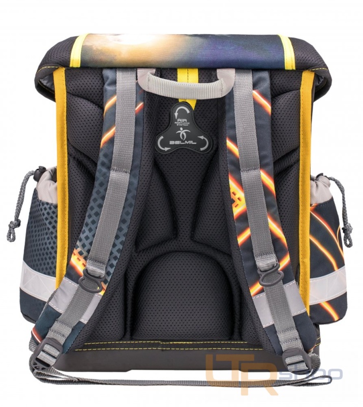 Se školní aktovkou Belmil je zaručena bezpečnost, i když je tma. Pečlivě umístěné reflexní pásky na všech stranách, silný a snadno použitelný kovový zámek s reflexním prvkem zajišťuje vysokou viditelnost v noci.