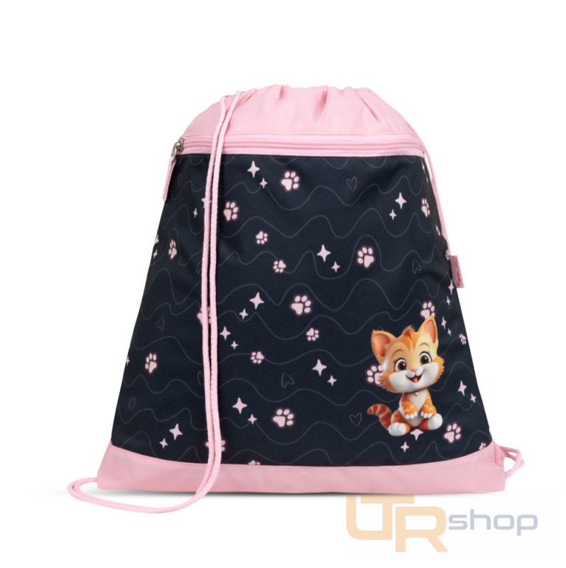 Sáček na přezůvky nebo na tělesnou výchovu. Je lehký a pro uskladnění nepotřebuje mnoho místa. Obsahuje 2 přihrádky. Hlavní přihrádka se dá stáhnout pomocí šňůrky, další se zavírá zipem. Díky přidané síťovině vzadu je zajištěno správné proudění vzduchu, proto je pytlík ideální na nošení přezůvek nebo tenisek na tělesnou výchovu. Je vyroben z odolných materiálů. Může se nosit v ruce nebo jako vak na zádech.