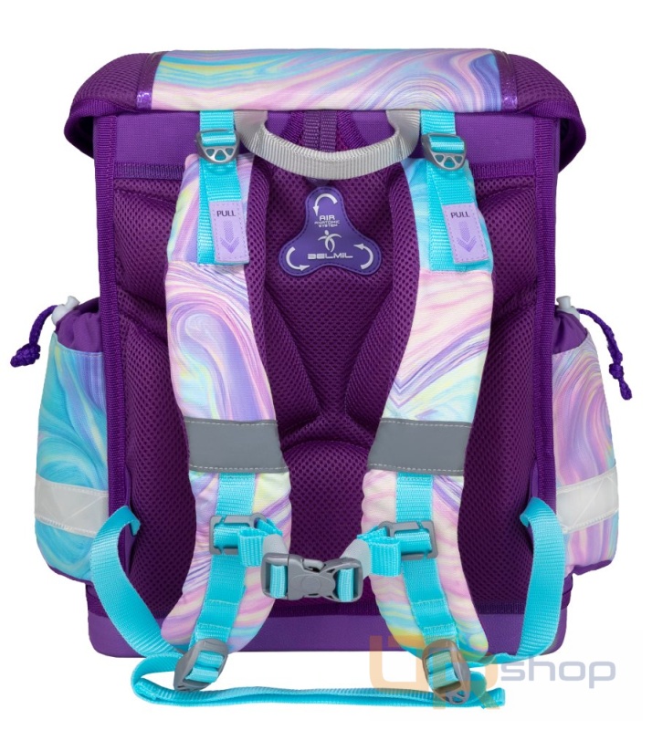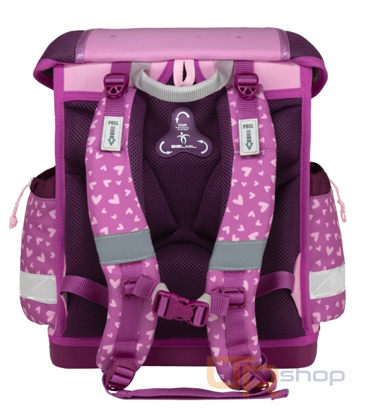 Se školní aktovkou Belmil je zaručena bezpečnost, i když je tma. Pečlivě umístěné reflexní pásky na všech stranách, silný a snadno použitelný kovový zámek s reflexním prvkem zajišťuje vysokou viditelnost v noci.