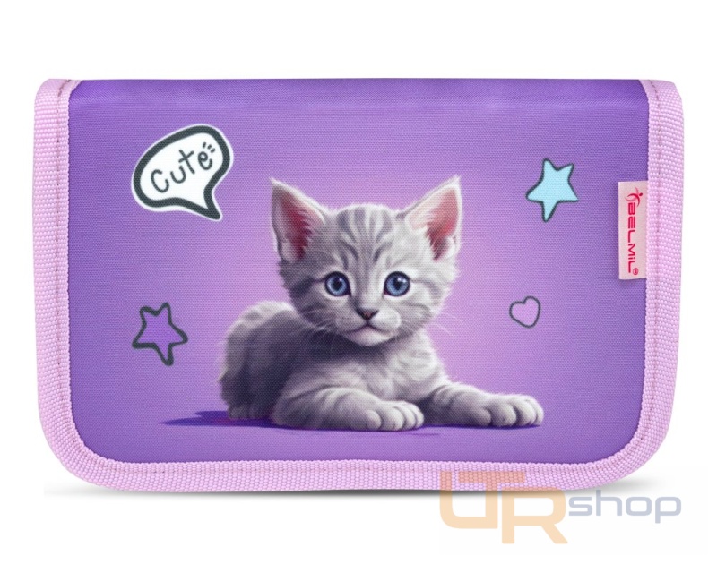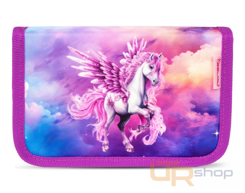 Prázdný školní penál, ideální pro první stupeň základní školy. Dvě vyklápěcí chlopně mají z jedné strany průhledné fólie na rozvrh hodin. Po vyklopení chlopní naleznete uvnitř množství užitečných gumových úchytů na psací potřeby.