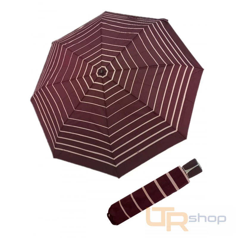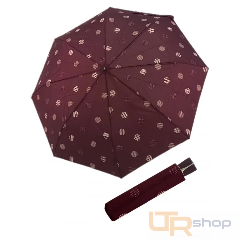 Dámský skládací deštník z kvalitní konstrukce ze sklolaminátu, oceli a hliníku. Deštník se snadno překlopí zpět do původní polohy. Barevně ladící ručka s potahem. Deštník je vhodný do kabelky a má velikou střechu. Kvalitní lehký supertenký rychleschnoucí polyesterový potah.