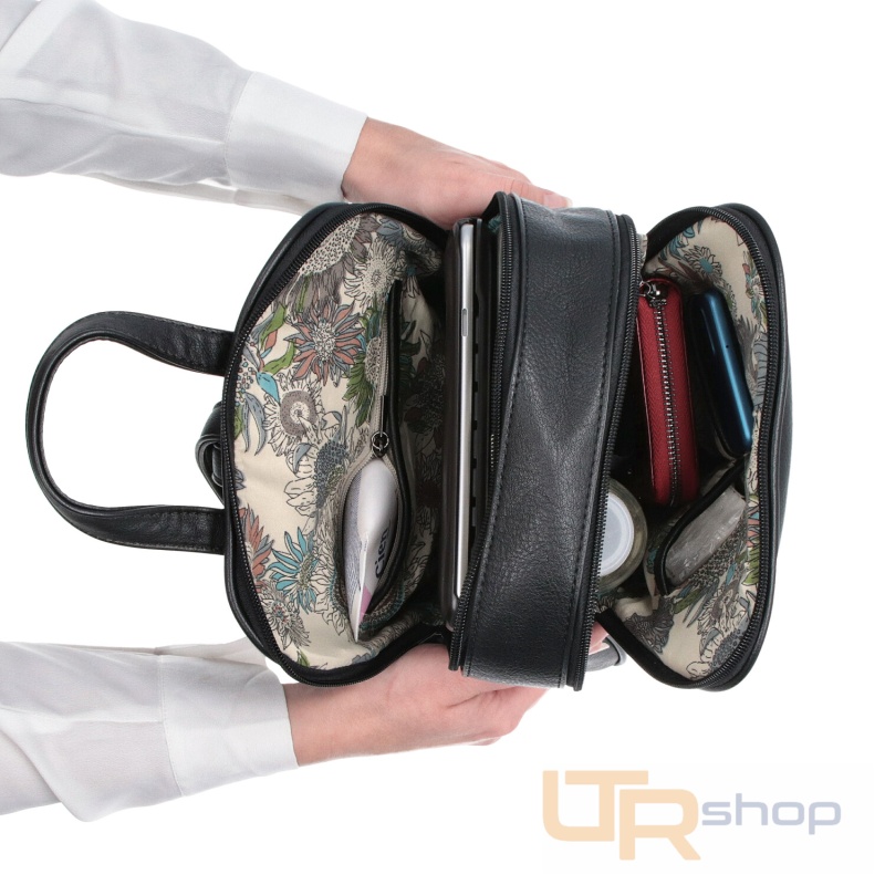 Nebaví Vás nosit kabelku do města? Zkuste náš elegantní batoh značky Tangerin, který Vás potěší dvěmi prostornými kapsami na zip a je vyroben z kvalitního syntetického materiálu.