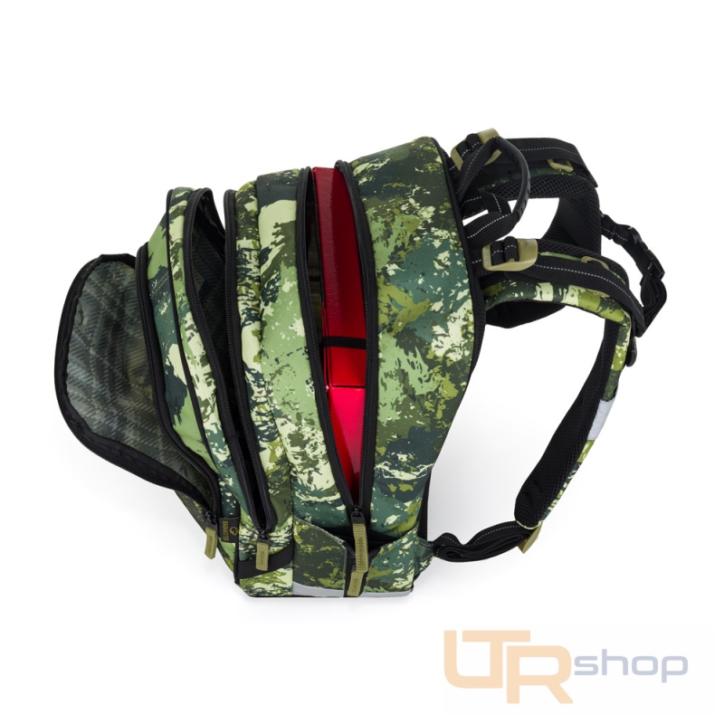 Nastavitelné ramenní popruhy, měkce polstrované, včetně hrudní pásky a reflexních prvků