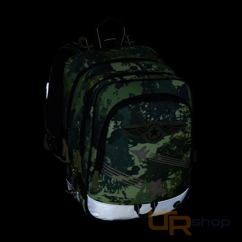 Lehký tříkomorový školní batoh s vojenským motivem pro malé hrdiny. Oblíbí si jej děti i rodiče. Vhodný od první do třetí třídy. Kvalitní systém pro zdravá záda, organizér a praktické kapsy, do kterých si školák přehledně uspořádá učebnice i pomůcky. Bezpečné cesty do školy zaručují reflexní prvky rozmístěné ze všech stran.