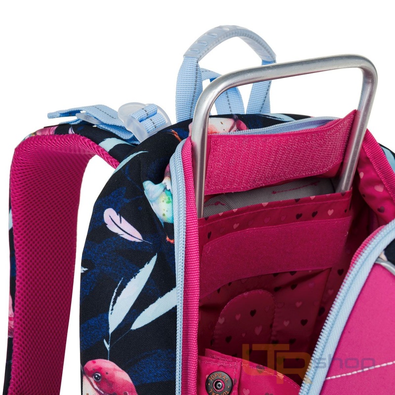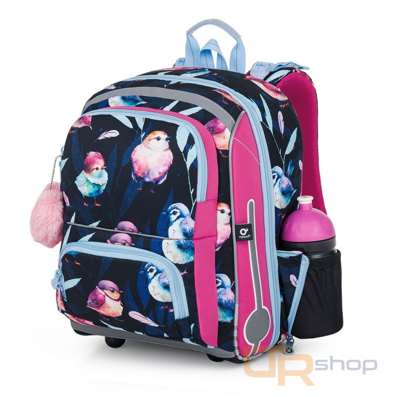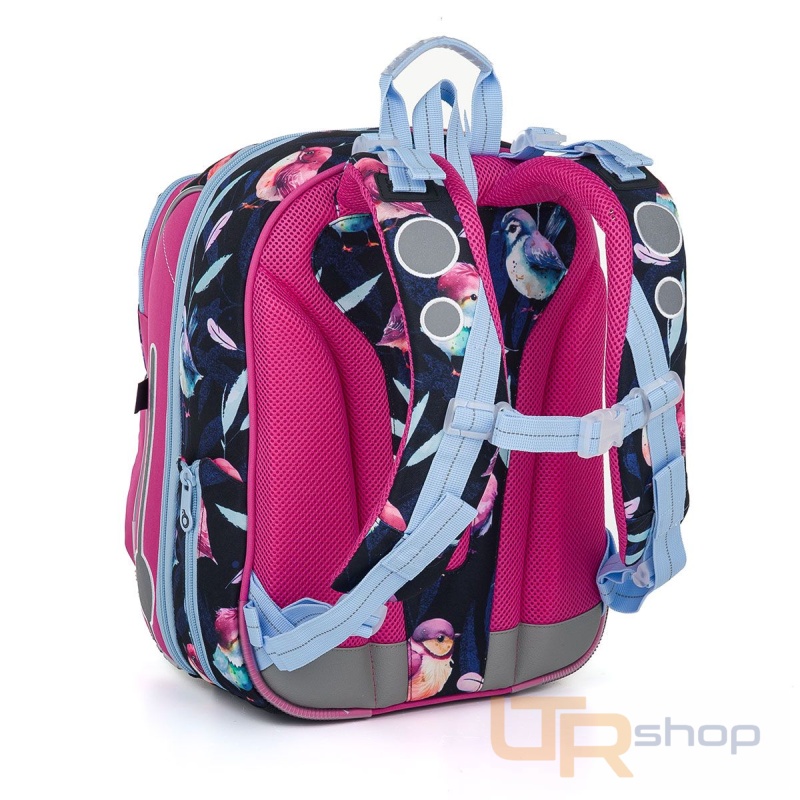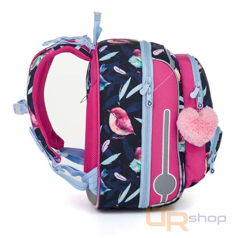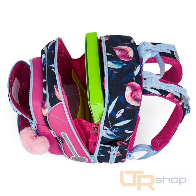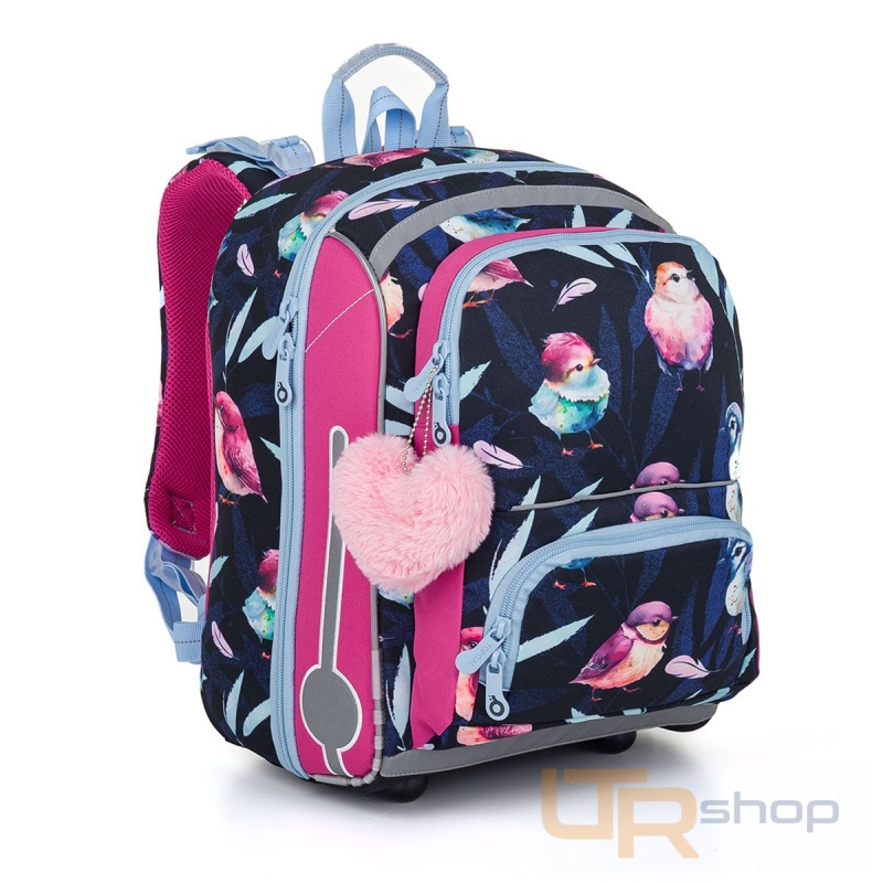 Model BEBE je kompromis mezi aktovkou a školním batohem, který je vhodný pro malé slečny s výškou 110 cm. Roztomilé malé vrabčáky doplní plyšový přívěsek ve tvaru srdce.
