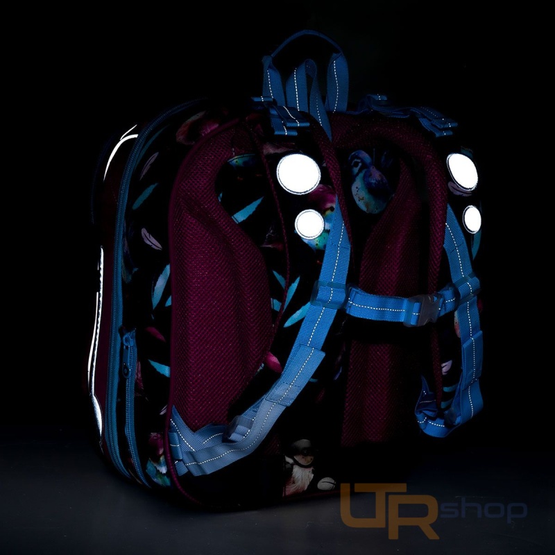 reflexní prvky: na čele a bocích batohu, na ramenních popruzích