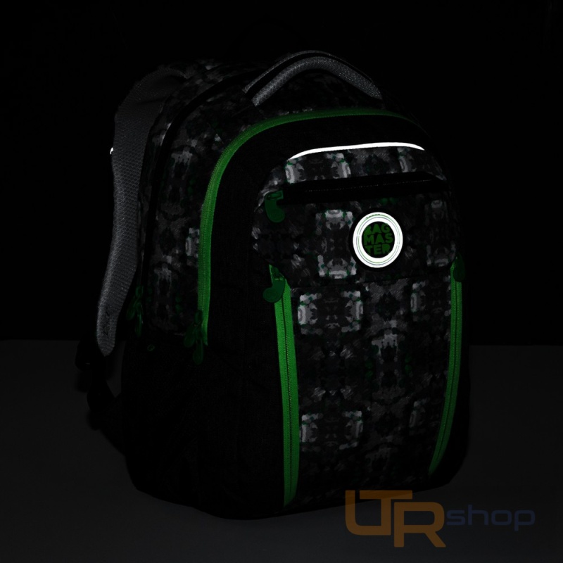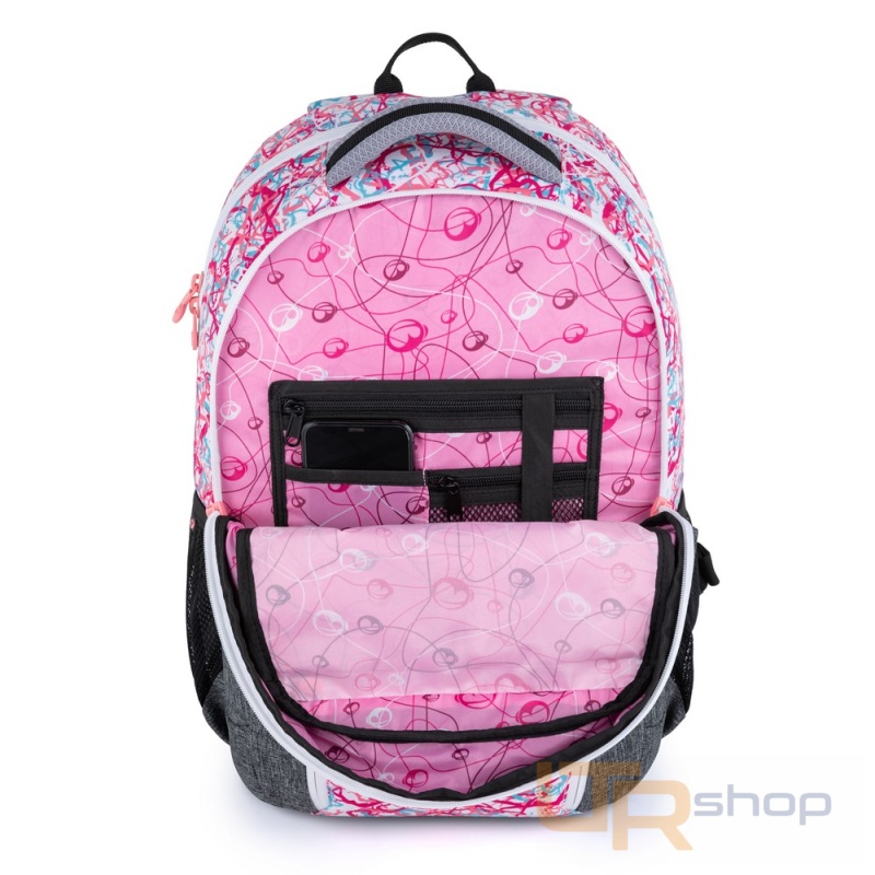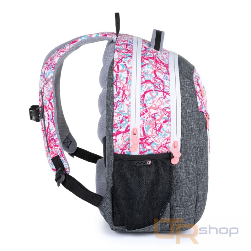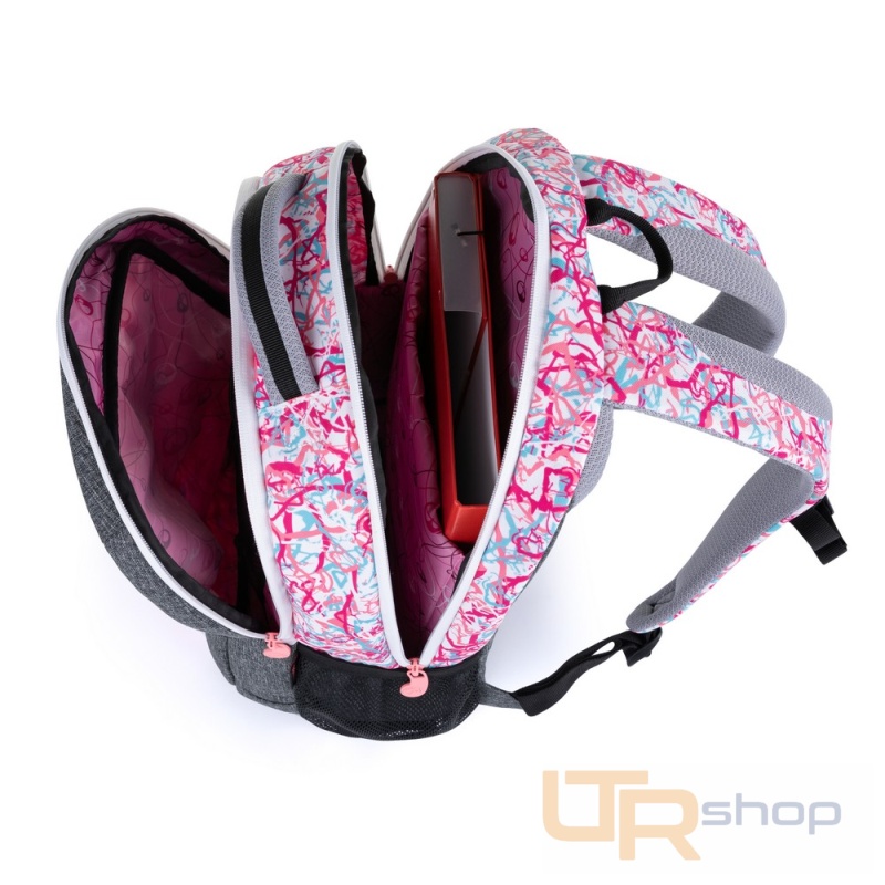 Dvoukomorový, prostorný školní batoh od 4. třídy základní školy. Nový zádový systém Air flow MAX system Polstrované anatomické ramenní popruhy. Stabilní zpevněné dno. Organizér, reflexní prvky, boční síťované kapsy na láhev.