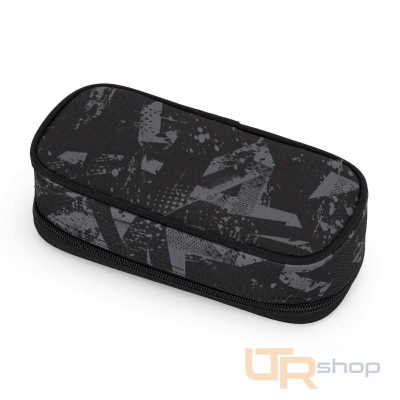 Černo-šedý penál pro malé školáky a školačky. Na dvojité přepážce jsou gumová poutka na psací potřeby, další pomůcky se vejdou do prostoru pod přepážkou. Zapíná se pohodlně zipem s jedním taháčkem.