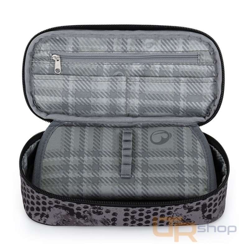 Uzavírá se na zip, takže Ti z něj nebude nic vypadávat do batohu ani na lavici.