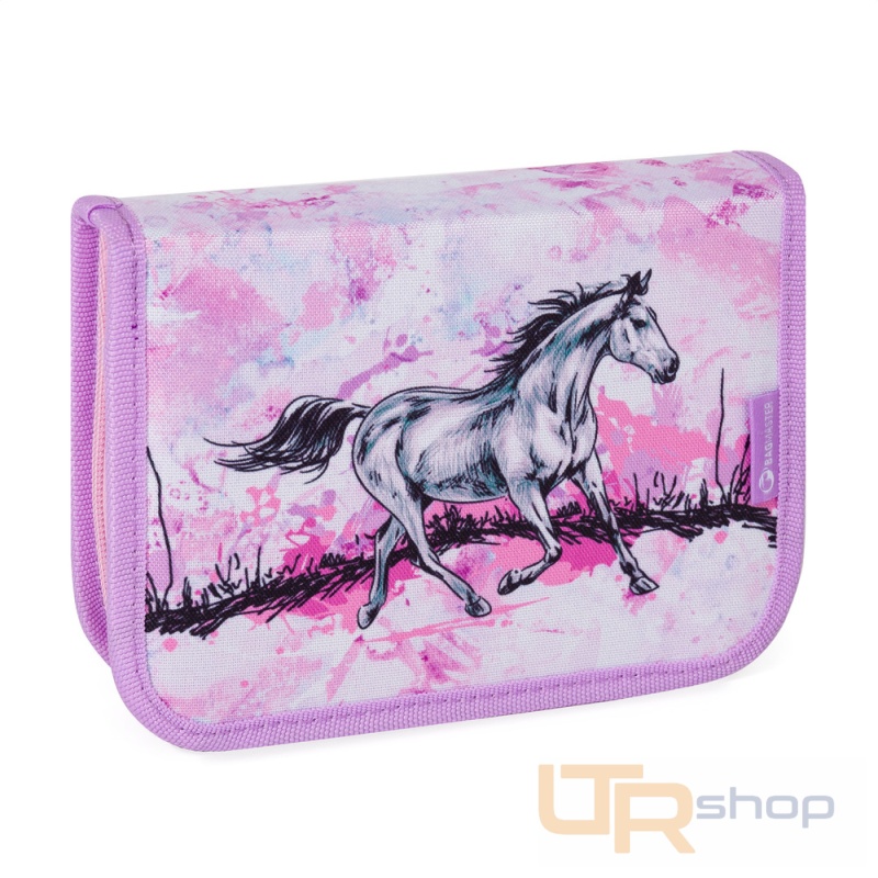Jemný holčičí penál s koníky vhodný pro malé školačky na první stupeň. V gumových úchytech na dvou chlopních je dostatek místa na všechny potřebné školní pomůcky. Pouzdro se uzavírá kvalitním zipem.