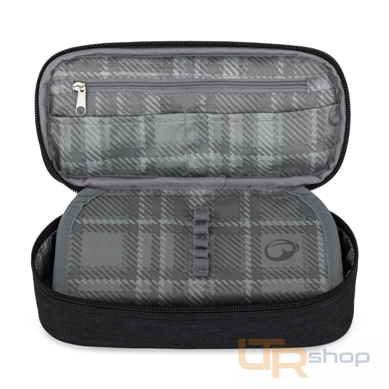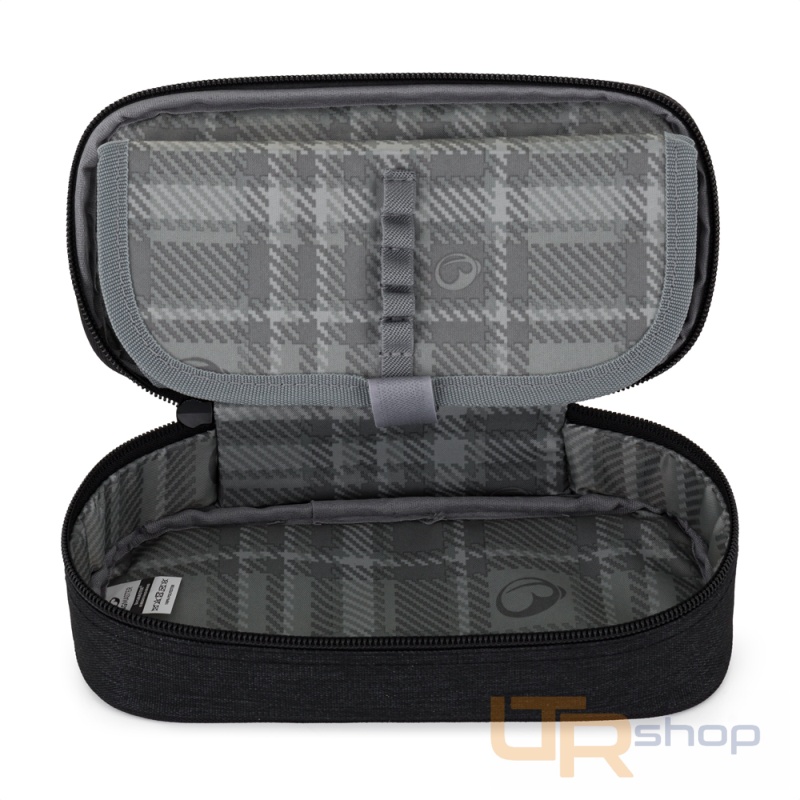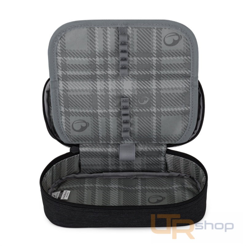 Černé jednokomorové pouzdro k batohu ENERGY 25 A pro holky. Uvnitř má dvojitou přepážku s 20 pružnými úchyty a tři menší kapsičky.
