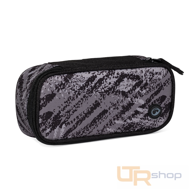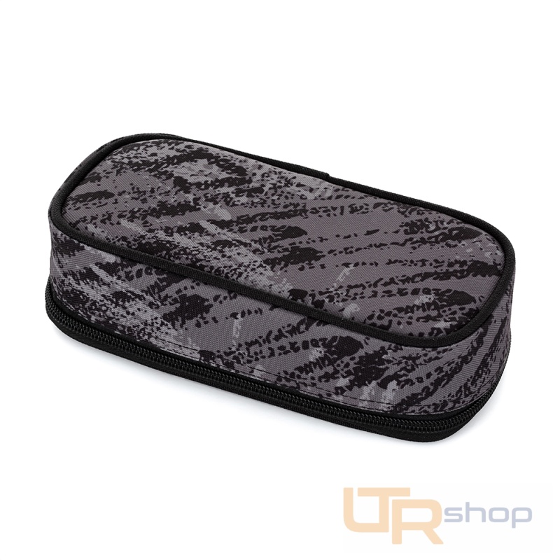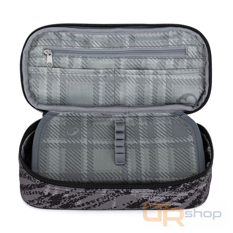 Šedý penál pro malé školáky a školačky. Na dvojité přepážce jsou gumová poutka na psací potřeby, další pomůcky se vejdou do prostoru pod přepážkou. Zapíná se pohodlně zipem s jedním taháčkem.