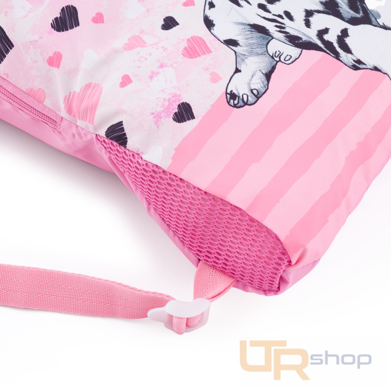 Látkový vak na přezůvky nebo cvičební úbor s motivem tygra a bezpečnými reflexními prvky. Široké popruhy se nezařezávají do ramenou, jejich délku lze pomocí plastové spony snadno nastavit. Sáček je sladěný k batohu a setu BETA 24 B.