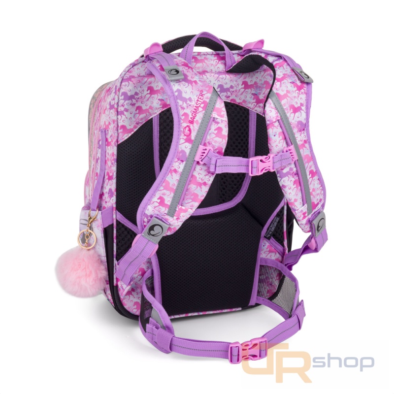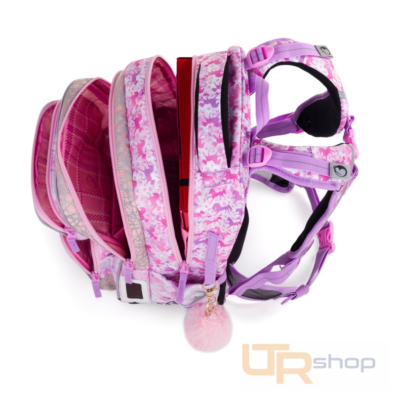 Jemný batoh pro malé školáky od 1. do 3. třídy. Je extra lehký, přitom prostorný. Má dvě velké komory a dvě praktické přední kapsičky. Stojí na plastových nožkách, ve tmě svítí reflexními