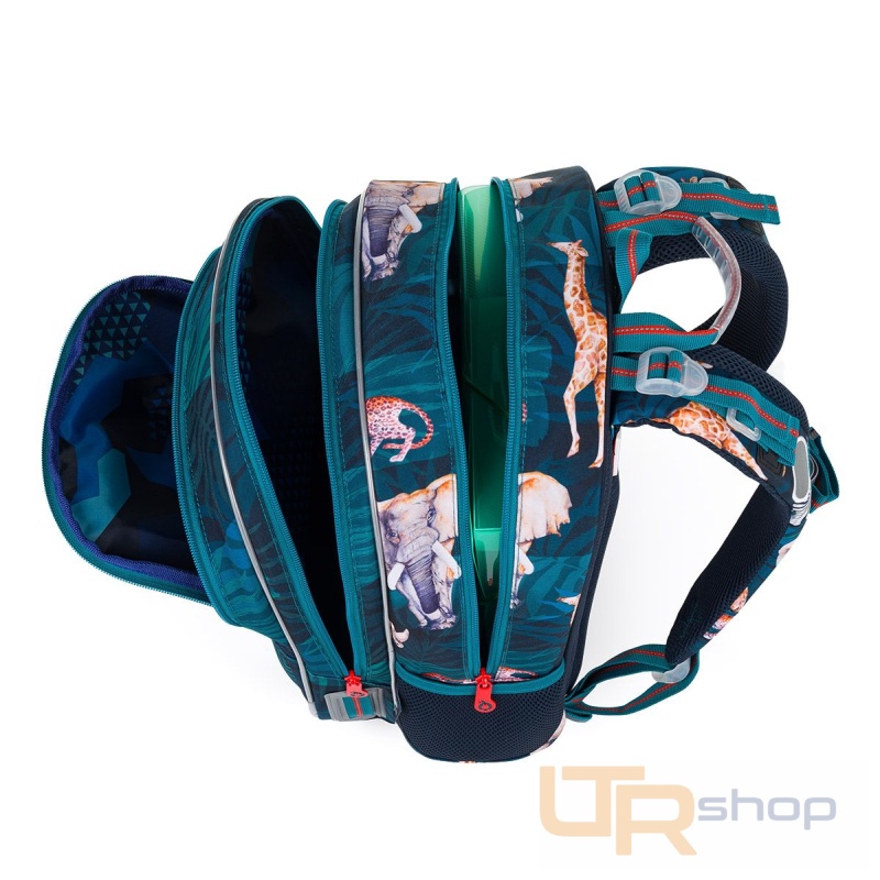 Batoh má dvě objemné hlavní komory. Zadní komora je objemnější a spolehlivě pojme všechno učení. Přední komora je o něco užší a skrývá malou síťovou kapsu na zip a jmenovku.