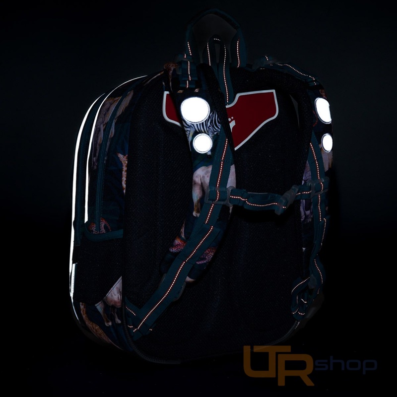 reflexní prvky: na čele a bocích batohu, na ramenních popruzích