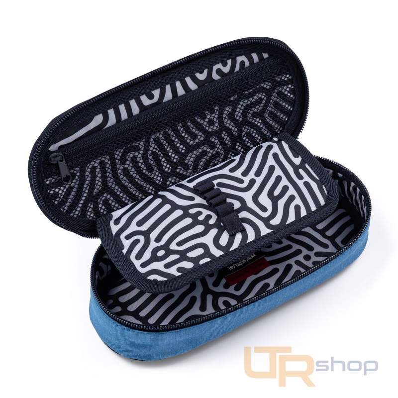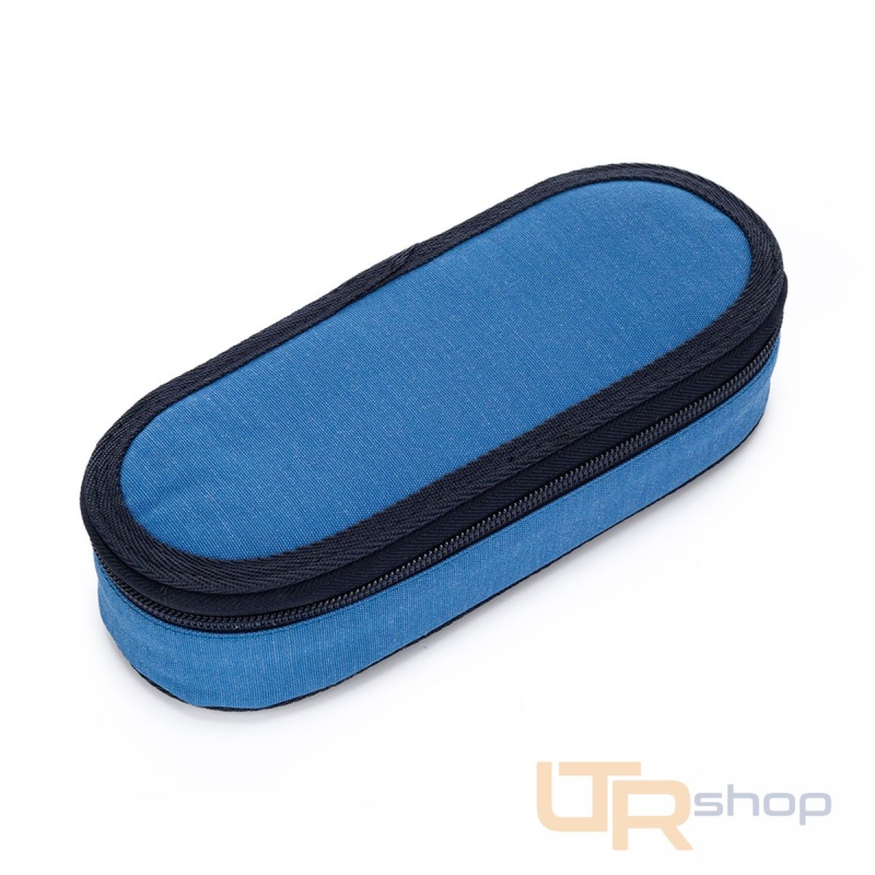 Oválný penál pro všechny starší školáky a studenty. Uvnitř pouzdra je síťová kapsička na zip a klopa. Na ní jsou umístěny gumičky pro uchycení celkem devíti tužek a propisek, které je potřeba mít přehledně uspořádané a po ruce. Volný prostor pod klopou slouží pro další psací potřeby – pastelky, fixy, ale i pravítko nebo kružítko.