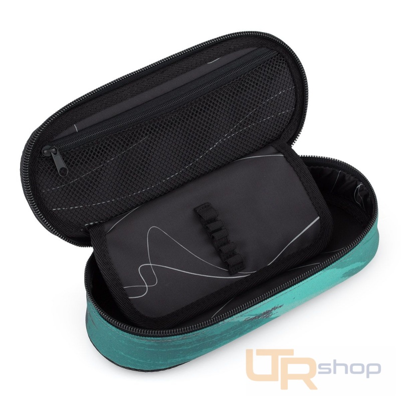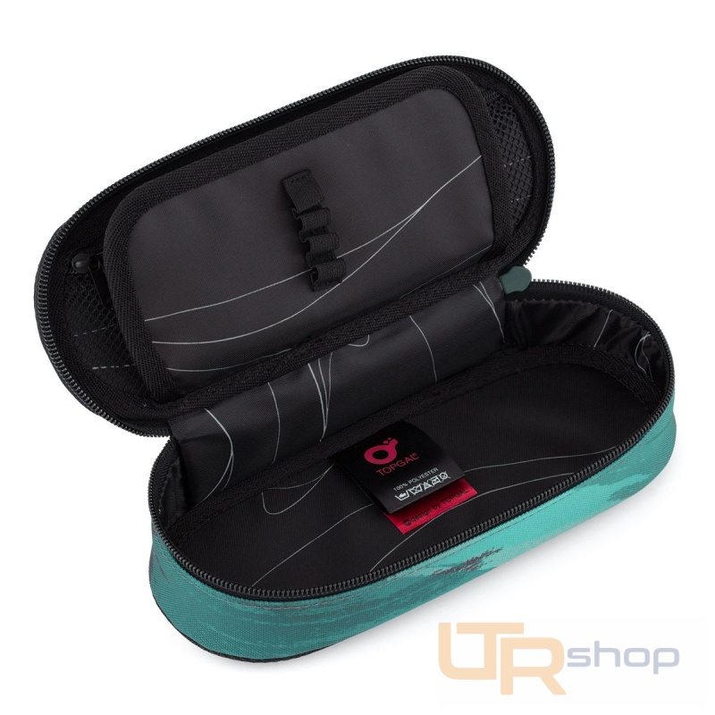 Oválný penál pro všechny starší školáky a studenty. Uvnitř pouzdra je síťová kapsička na zip a klopa s devíti gumičkami na propisky. Volný prostor pod klopou slouží pro další psací potřeby – pastelky, fixy, ale i pravítko nebo kružítko.