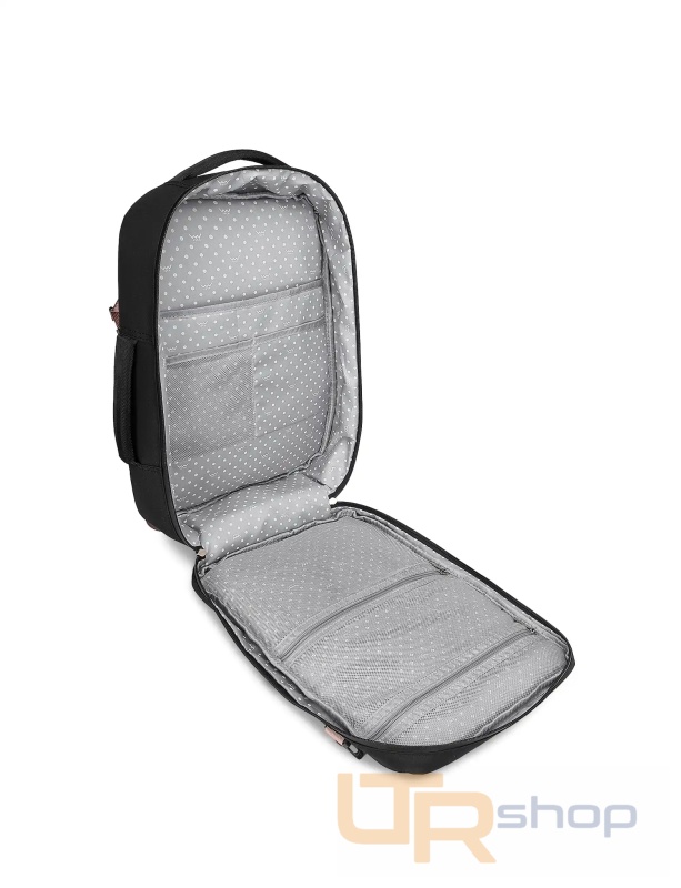 Vlastnosti Nepromokavý materiál, Skrytá kapsa, Vnitřní kapsa na zip, Polstrovaná záda, Polstrované popruhy, Voděodolný materiál, Uchycení na kufr