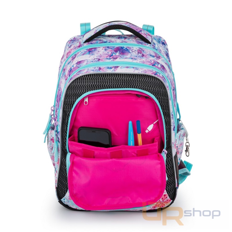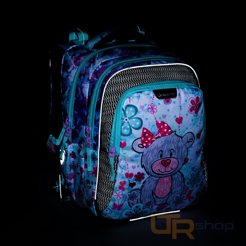 1.-3.třída ZŠ. Tříkomorový školní batoh do první třídy.s obrázkem. Polstrovaný zádový systém se zdravotním posudkem, nový typ síťoviny, která neškrábe a je jak na zádech, tak na ramenních popruhách. Prostorný batoh s organizérem. Boční poutko pro uchycení navyjáku na čip nebo klíče. Polstrované dno. Plastové nožky. Reflexní prvky.
