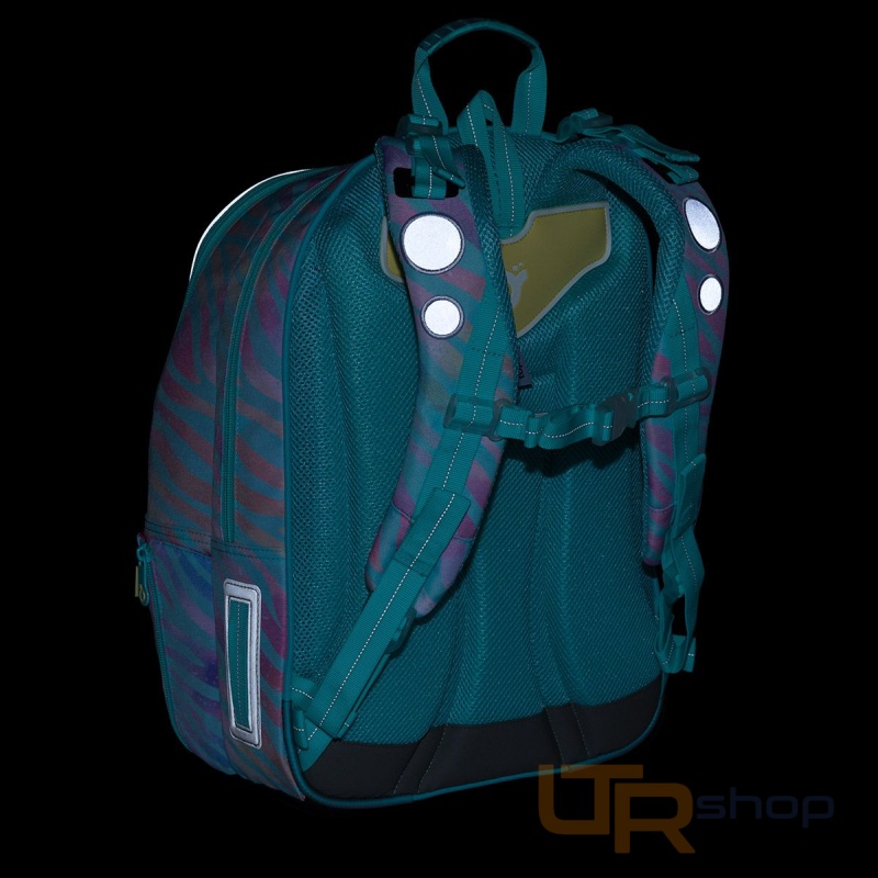 reflexní prvky: na čele a bocích batohu, na ramenních popruzích