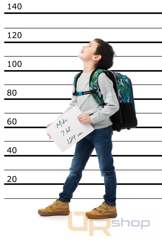 Ramenní popruhy jsou anatomicky tvarované a měkce polstrované. Popruhy je možné individuálně nastavit dle velikosti vašeho školáka a to pomocí horních a dolních plastových spon umístěných na ramenních popruzích. Součástí batohu je flexibilní hrudní páska k fixaci popruhů na ramenou školáka. Tuto hrudní pásku můžete kdykoliv sundat.