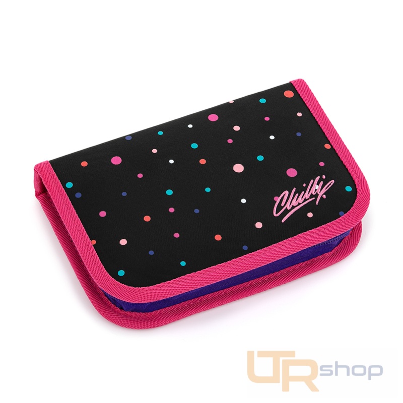 Jednopatrové školní pouzdro je vybaveno osmnácti klasickými gumovými úchyty na pastelky a fixy, čtyřmi širšími úchyty na pravítko, kružítko či nůžky a dvěma většími úchyty na gumu a ořezávátko. Pod klopnou z průhledné folie najdete rozvrh hodin, ale třeba poslouží i na taháky :-)