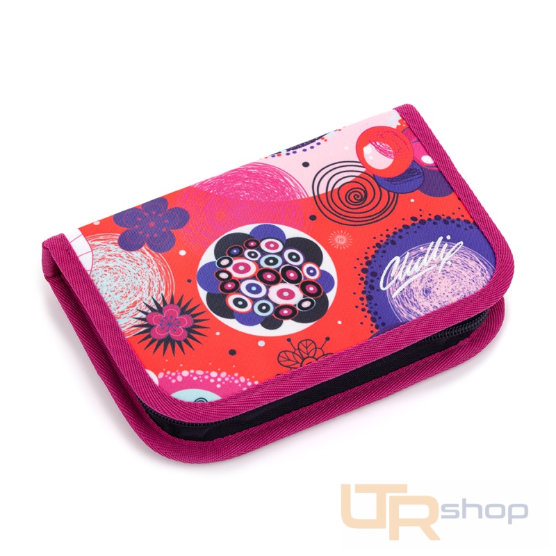 Jednopatrové školní pouzdro je vybaveno osmnácti klasickými gumovými úchyty na pastelky a fixy, čtyřmi širšími úchyty na pravítko, kružítko či nůžky a dvěma většími úchyty na gumu a ořezávátko. Pod klopnou z průhledné folie najdete rozvrh hodin, ale třeba poslouží i na taháky :-)