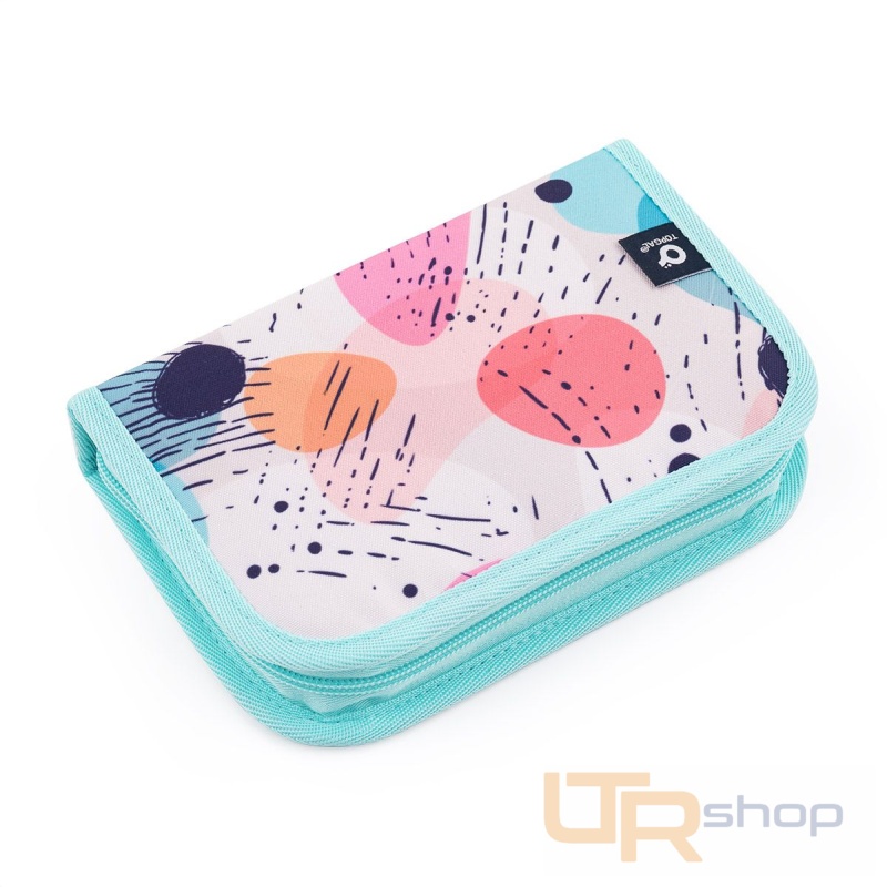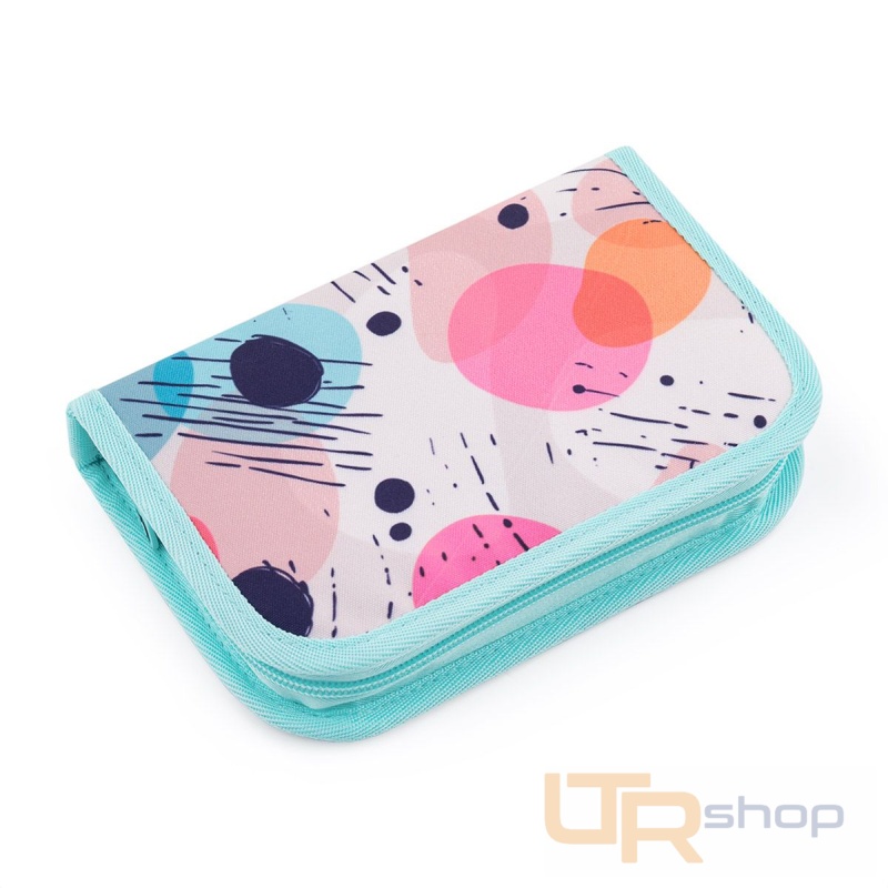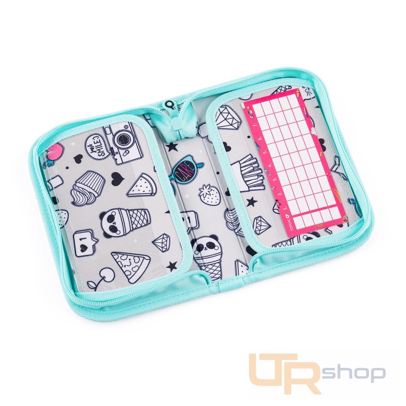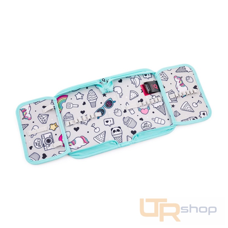 Jednopatrové školní pouzdro se dvěma klopami. Díky gumovým úchytům se do nich vejde celkem dvacetjedna pastelek, tužek a fixek. Tři širší úchyty poslouží na pravítko, kružítko či nůžky. Dva větší na gumu a ořezávátko.