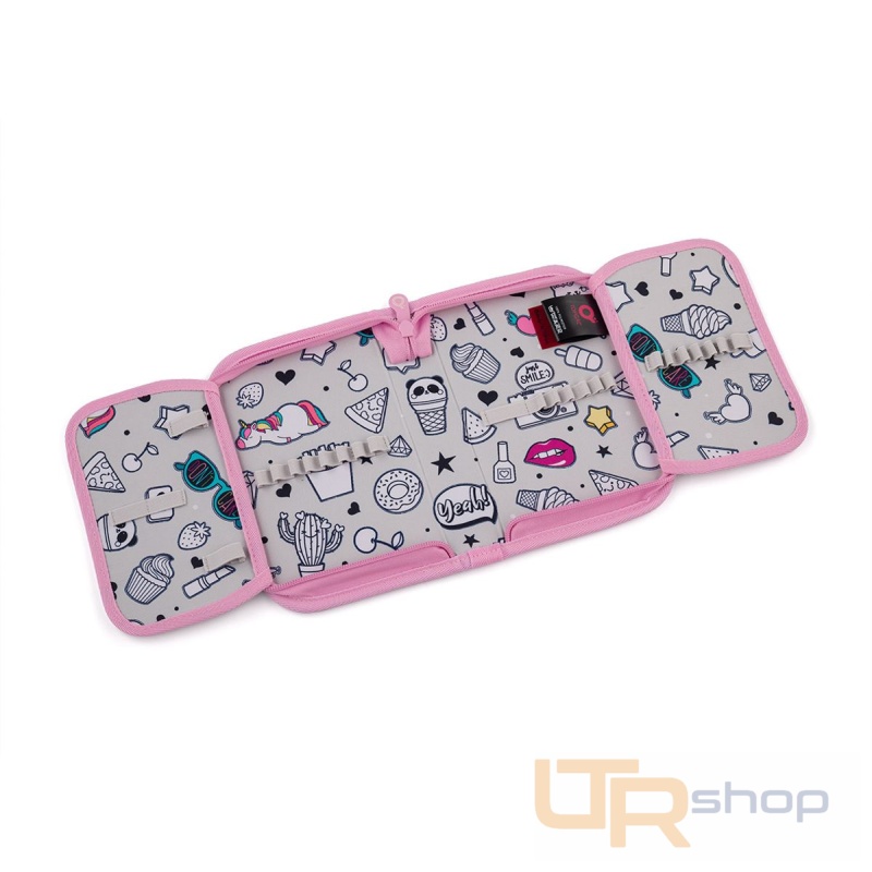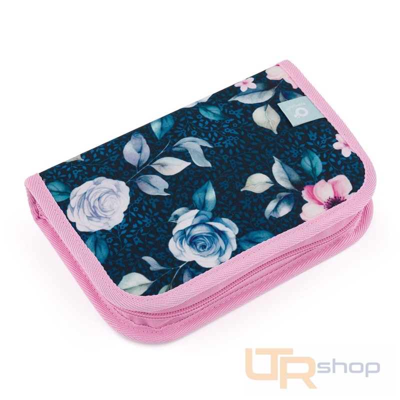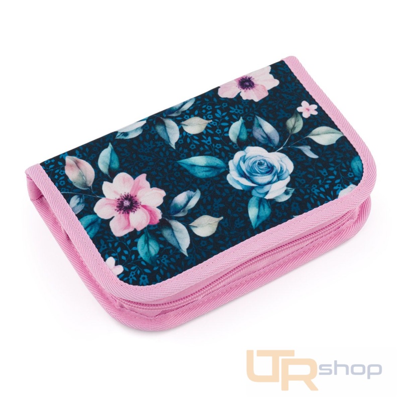 Jednopatrové školní pouzdro se dvěma klopami. Díky gumovým úchytům se do nich vejde celkem dvacetjedna pastelek, tužek a fixek. Tři širší úchyty poslouží na pravítko, kružítko či nůžky. Dva větší na gumu a ořezávátko.