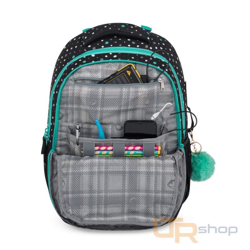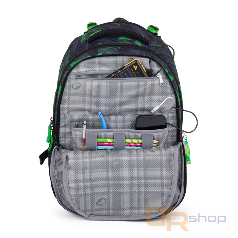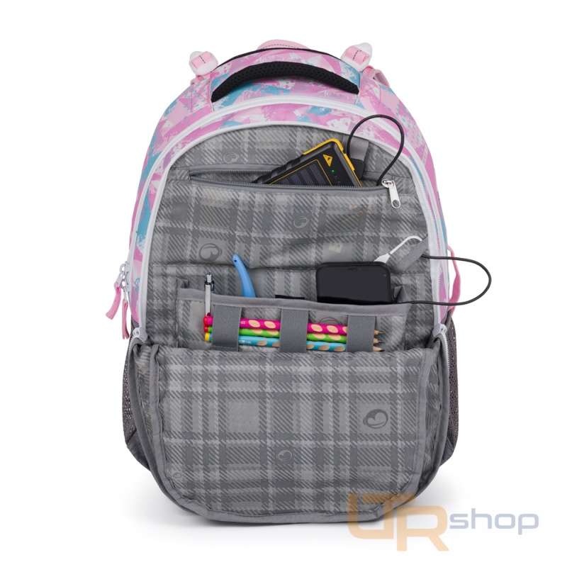 Má organizér s vychytávkami jako kapsa se zipem na powerbanku, speciální poutko na sáček a poutka na nabíječku a tužky, takže budeš mít všechny své školní potřeby spolu s elektronikou vždy po ruce.