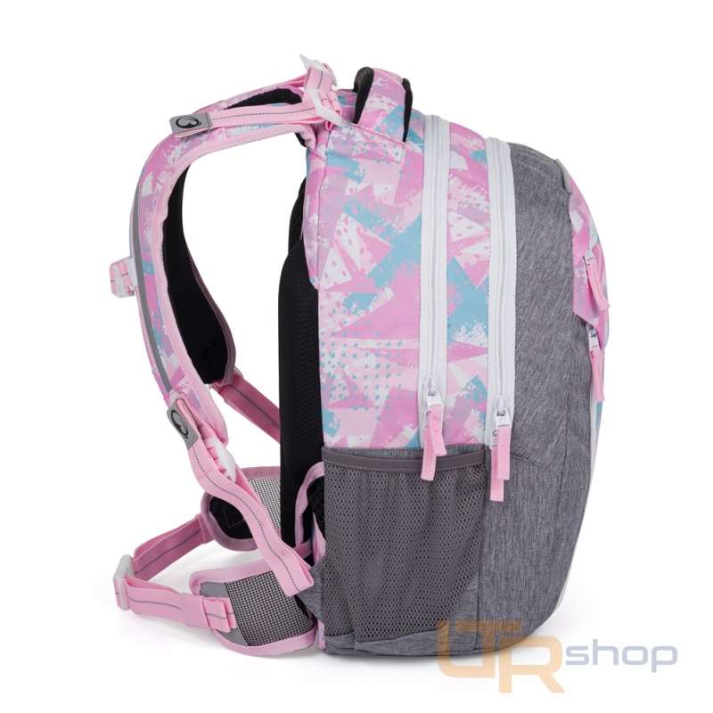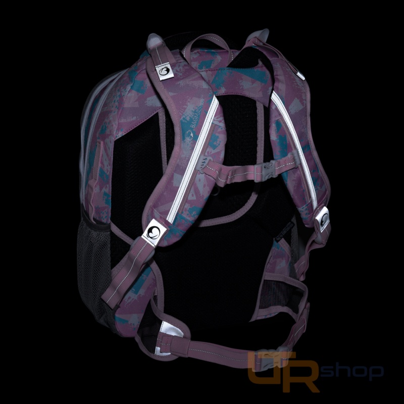 Lehký a vyjímatelný bederní pás vyrobený z prodyšné síťoviny pomáhá rozložit váhu batohu z ramenou a beder na pánev, kyčle a celé tělo. Školák se pod ním nepotí ani mu bederák nevytváří kolem těla „pneumatiku“. Navíc na sobě má reflexní prvky.