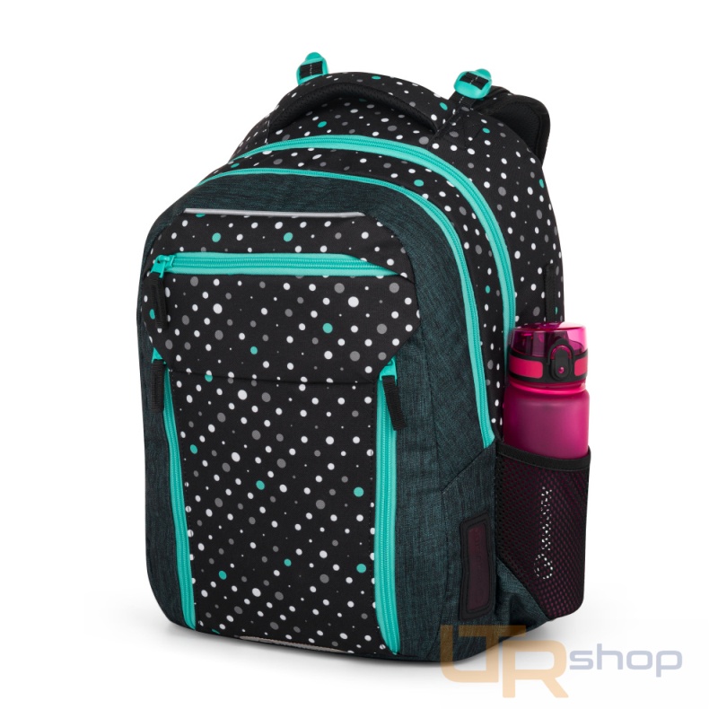 Polstrované dno (vyrobené z 1680 D materiálu, zpevněné prýmkem a prošité) je pevné. Batoh je díky němu stabilní, učebnicím se v něm nemačkají rožky a hezky stojí u lavice.