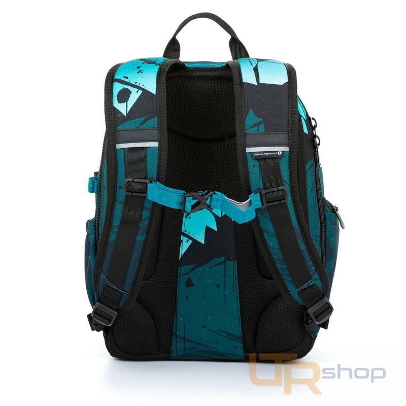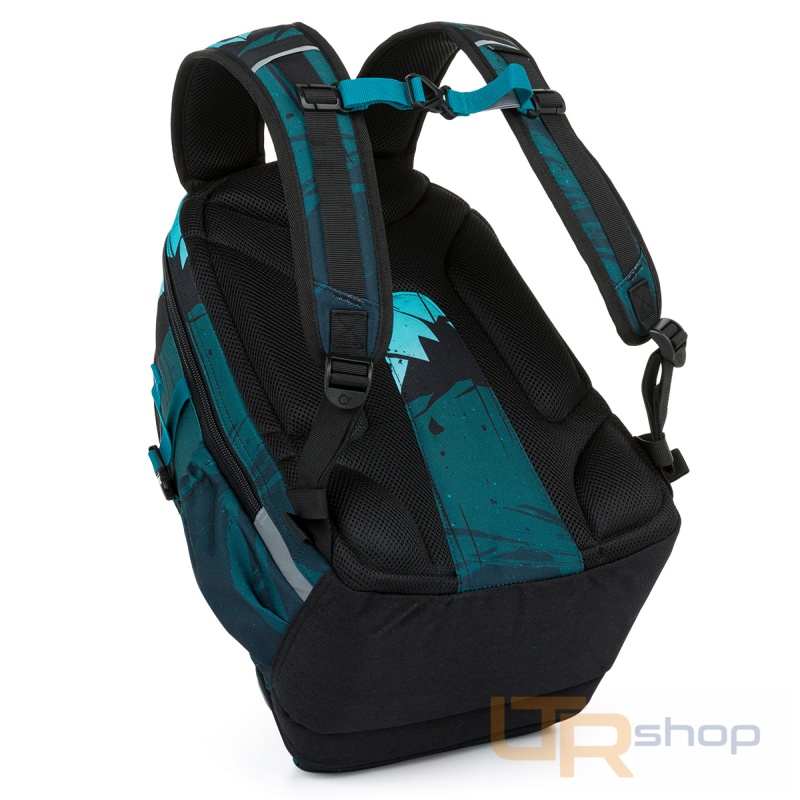 Dvoukomorový batoh v petrolejově zelené barvě pro studenty s výškou nad 145 cm.
