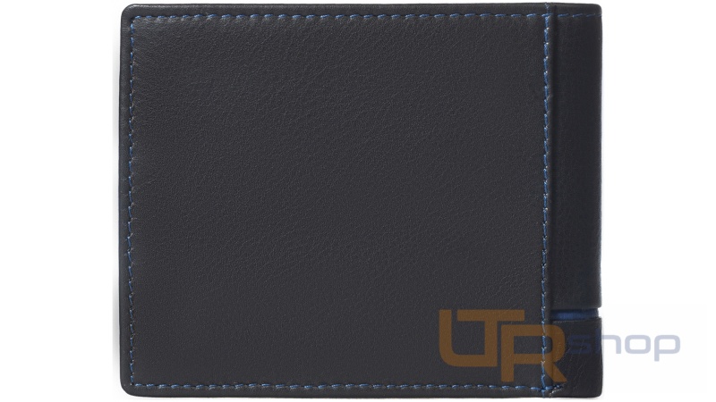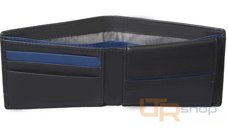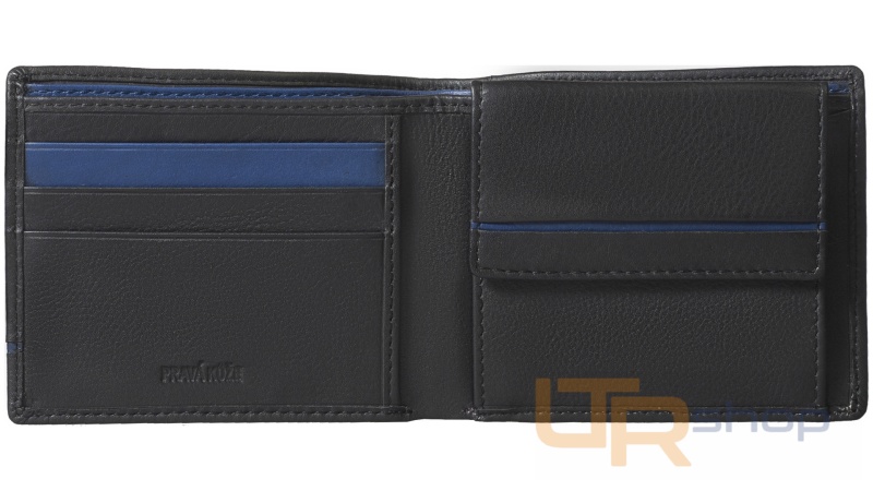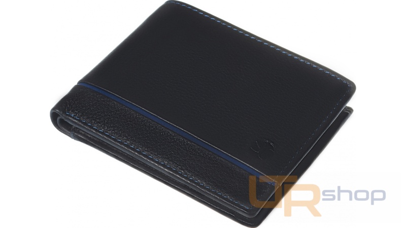 tato jednoduchá kožená peněženka uloží bezpečně všechny Vaše doklady a kreditní karty. Má dostatečně velkou kapsičku na drobné a dvě přihrádky na bankovky a účtenky pro Váš jednoduchý přehled. Klasická černá barva s modrými detaily dodávají peněžence elegantnost a nadčasovost proto je i u zákazníků hodně oblíbená.