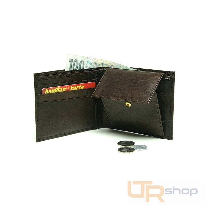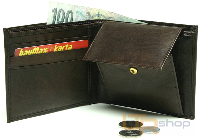 materiál kůže rozměry 10,5 x 9 přihrádka na bankovky 2 přihrádka na doklady 2 kapsa na mince 1 kreditní karty 3